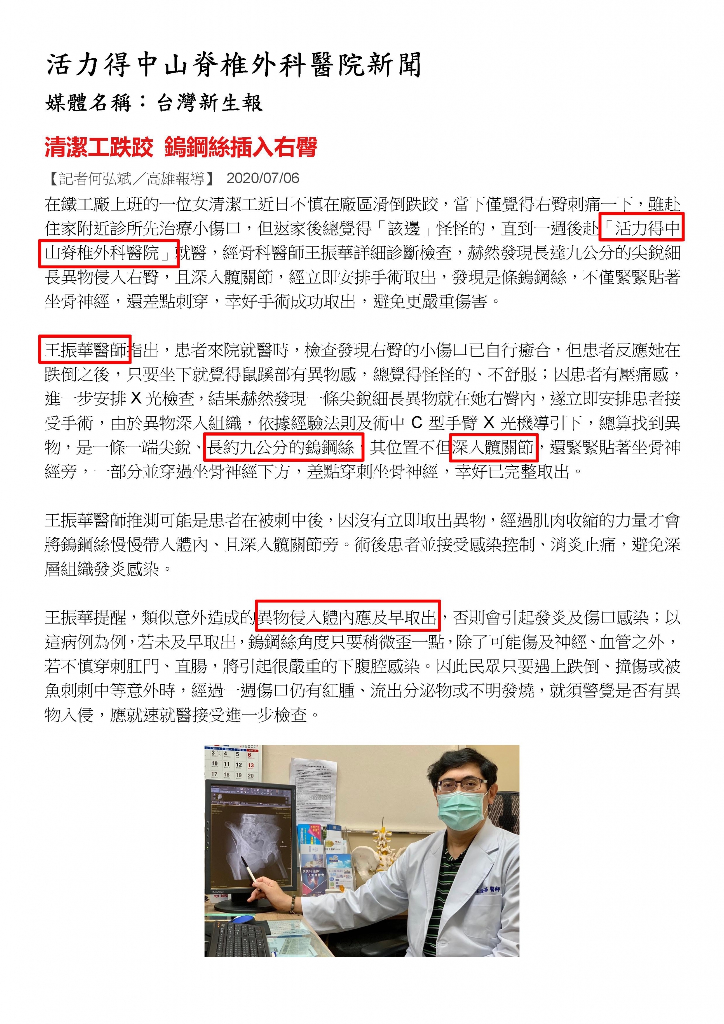 《媒體露出》女工摔跤9公分鎢鋼絲從右臀刺入 一週後才發現媒體專區 | 2020-07-01 上一篇 《媒體露出》婦人心肝頭亂跳誤以為心臟病 原來是甲狀腺亢進 下一篇 《媒體露出》女子防疫家中耍廢 跑步機減重卻「跑者膝」慘上身 返回上頁